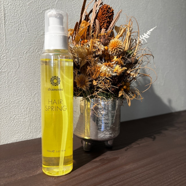 ヘアスプリングは髪の毛のファンデーションのようなオイルです。 何度でも塗り直しOK、重くならずベタつかず、速攻ツヤツヤサラサラが復活します。 とにかくつけた瞬間、ツヤと手触りが爆上がりします。 朝 お出かけ前になめらかなツヤ髪を作ります。 お昼 外出先でもツヤチャージ!乾燥が気になるオフィスやパサつきが気になる外出先でも手軽にツヤ髪に。軽い使用感なのでベタつかずどこでもお使いいただけます。 夜 ドライ後のケアに。毎日の入浴後のドライヤー後の乾いた髪に潤いチャージ!睡眠中の枕による摩擦を軽減します。 使用方法 ・シャンプー後タオルで水分をよく吸い取りドライしてください。その後に1プッシュ(適量)塗布ししっかりブラッシングで馴染ませてください。揮発性のオイルなのでドライ後に使用することで馴染みも良く紫外線防止とツヤ感、手触りがアップします。 ・ドライヤー前に使用することも可能です。 ・ヘアアイロンの使用前に塗布する場合は、オイル塗布後馴染ませしばらくしてからアイロン処理をしてください。